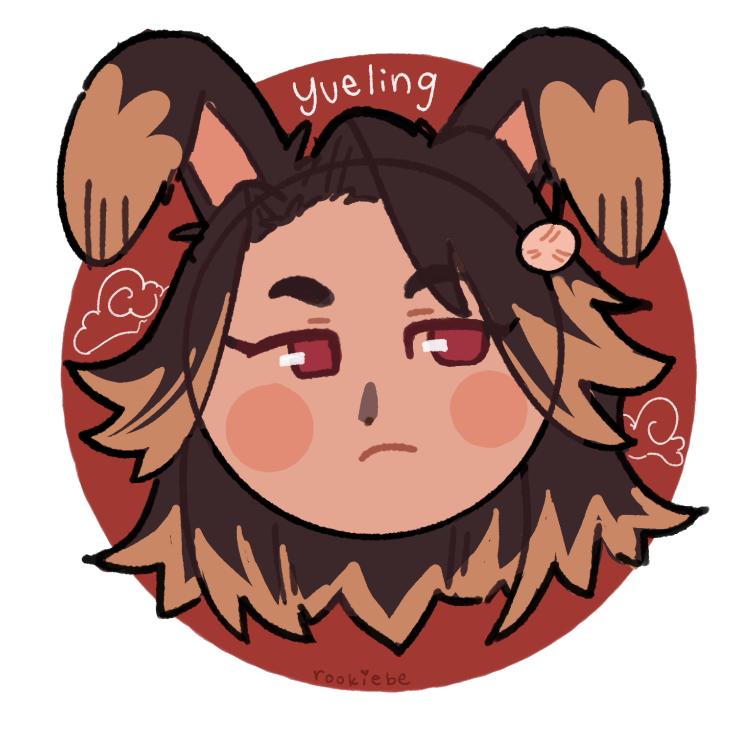 Yueling is tied to the moon in a lot of different ways, for example his name is composed of the three following characters: 朱 Zhu for Crimson, 月 Yue for The Moon and 灵 Ling for The spirit.